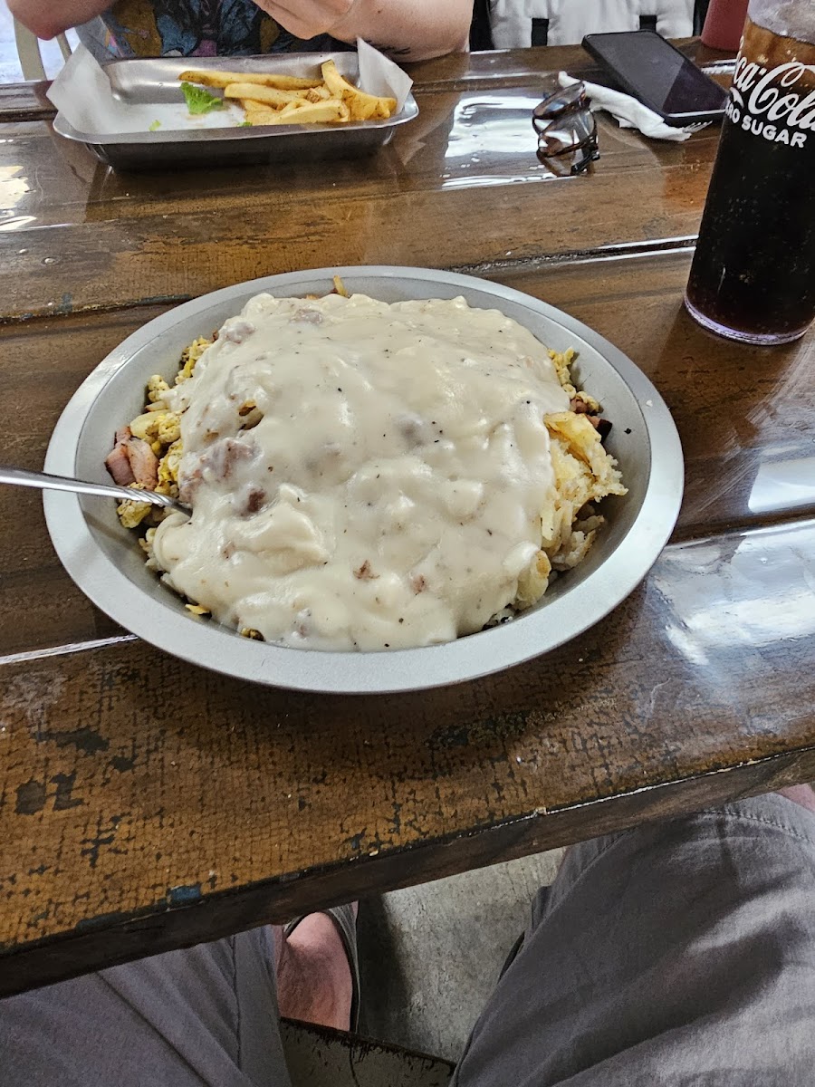 At lunch, the comfort food takes center stage with generous portions that evoke cherished memories of family gatherings. If you are keen on classic meals, the homemade chicken and dumplings may remind you of your mom's kitchen, while the goulash and mashed potatoes transport you back to your grandma’s Sunday dinners. And let's not forget the innovative twist on the traditional BLT, where adding an egg elevates a simple sandwich into a mouthwatering delight.